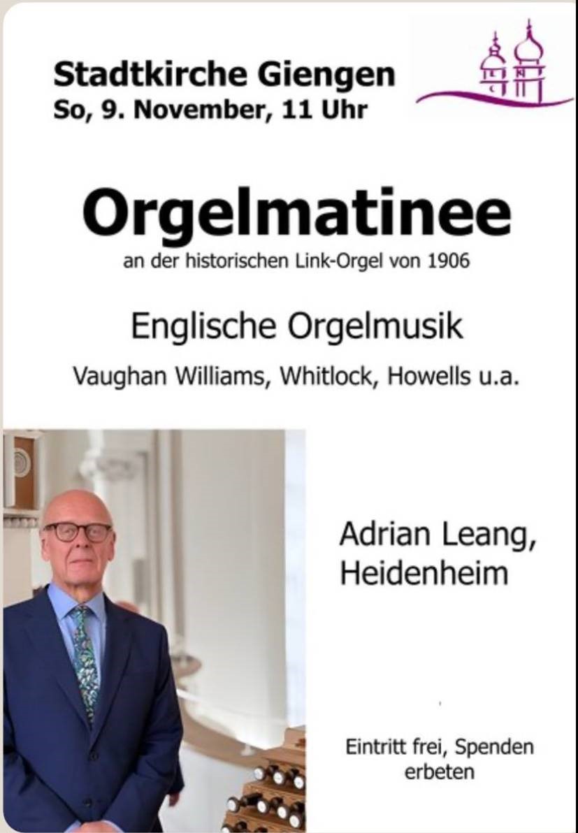 Unser Chorleiter des English Choir Heidenheim gibt ein Orgelkonzert als Teil der Giengener Orgelmatinée ...