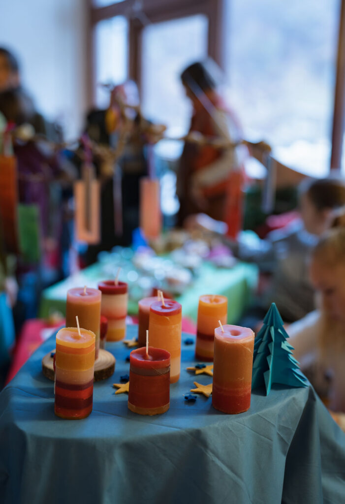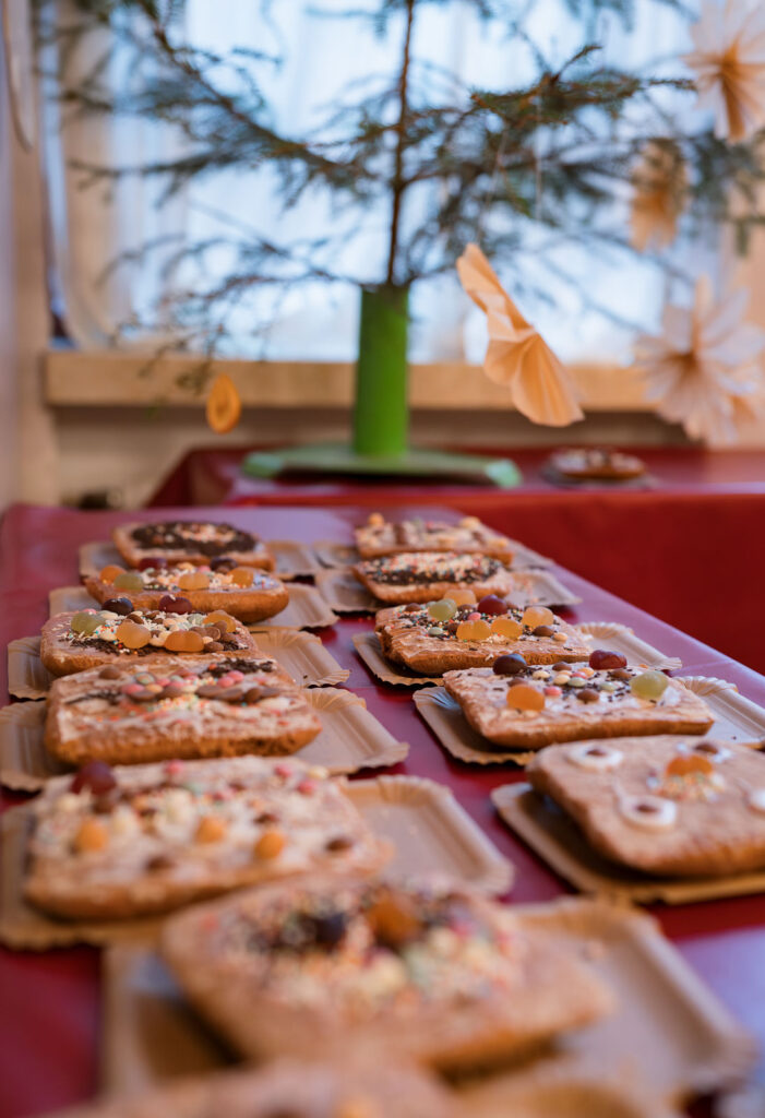 Besonders beliebt waren erneut die Kindererlebnisräume mit Lichtleinschwimmen, Kristallhöhle, Krabbelsack, Kinderbastelstube, Lebkuchenverzieren und dem Kindereinkaufsladen. Ein Höhepunkt war zudem das Weihnachtsspiel der 4. Klasse, das am Samstag zweimal im Festsaal aufgeführt wurde. Den musikalischen Abschluss bildete am Nachmittag das Konzert des Celloensembles „Qubus“.
