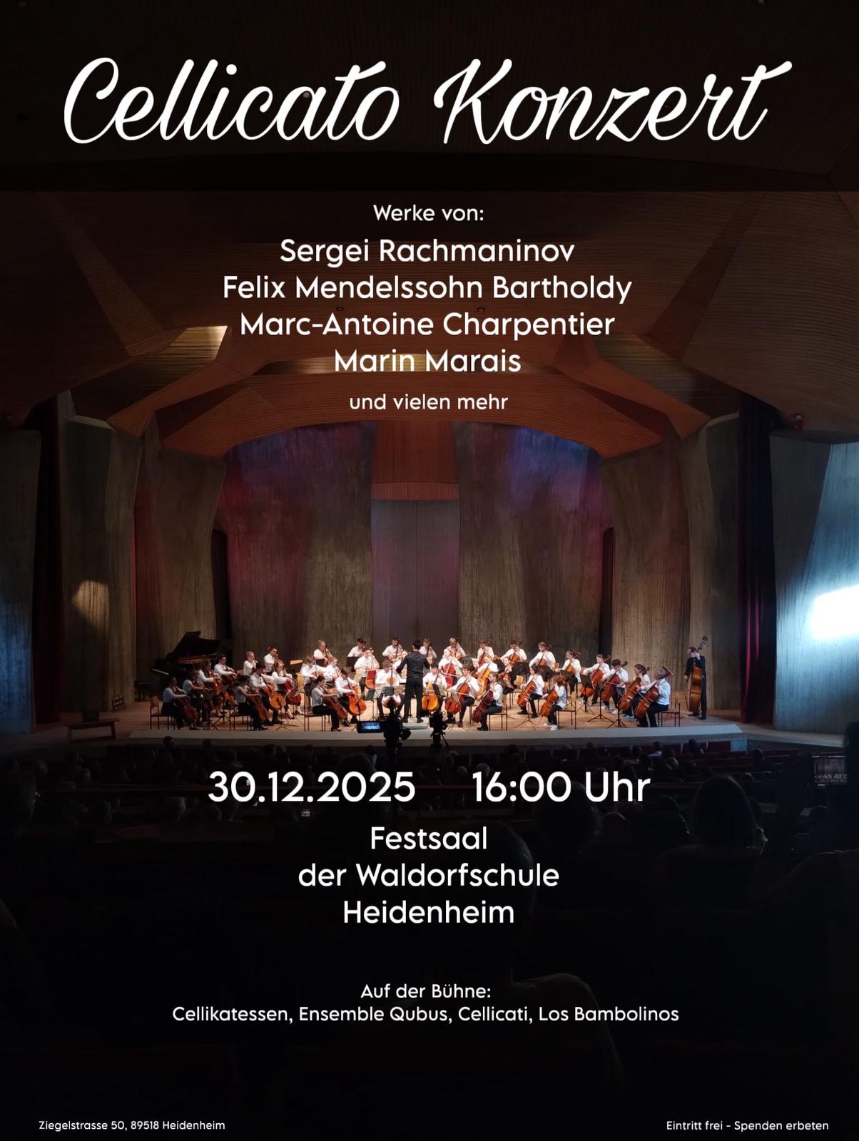 Am 30. Dezember laden wir alle Freunde schöner Cellomusik zu unserem Abschlusskonzert unseres Cellicatoprojekts im Dezember ein.