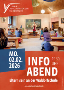 Infoabend „Eltern sein an der Waldorfschule“ Datum/Zeit 02/02/202619:30 Herzliche Einladung zu unserem Infoabend „Eltern sein an der Waldorfschule“ – erfahren Sie, wie wir Erziehung, Bildung und Gemeinschaft gemeinsam gestalten.