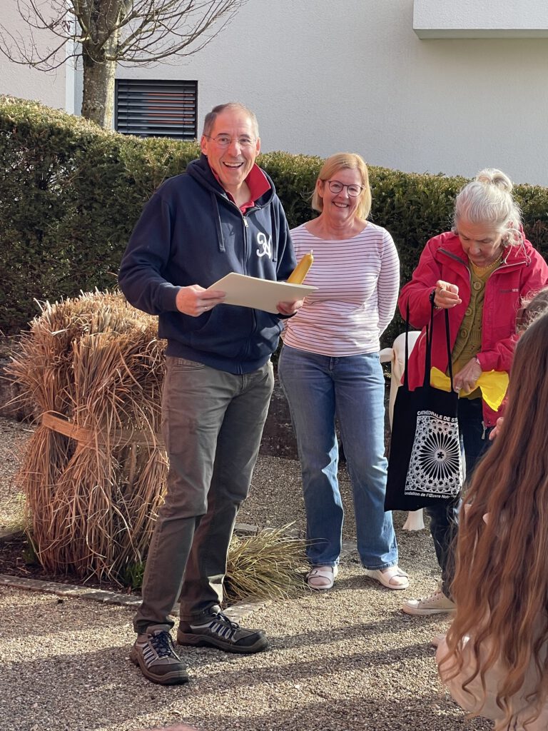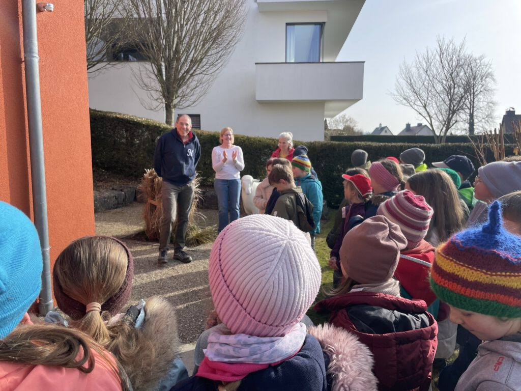 Bei strahlendem Wetter machten sich unsere Drittklässler auf den Weg zu unserem ehemaligen Bürgermeister Bernhard Ilg – mit einer kleinen Überraschung im Gepäck.