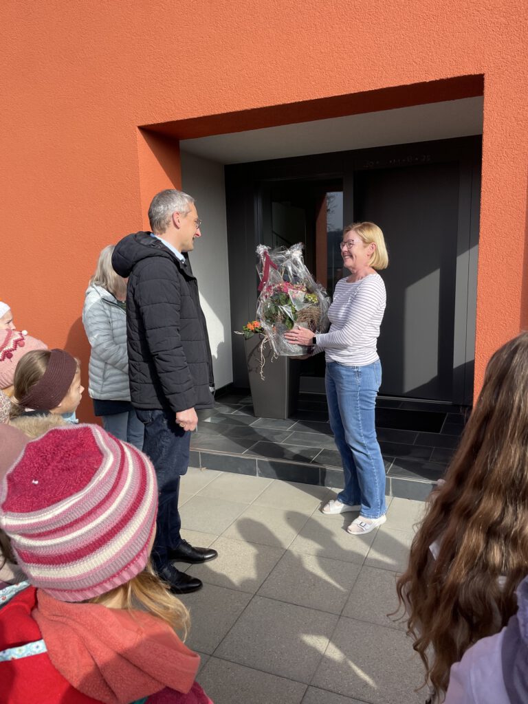 An seinem Zuhause angekommen, trafen sie ihn bei der Gartenarbeit und sorgten genau dort für einen unerwarteten Moment: Mit einem fröhlichen Ständchen gratulierten sie ihm nachträglich zu seinem Geburtstag im Februar. Die Kinder sangen mit viel Freude und spürbarer Begeisterung.