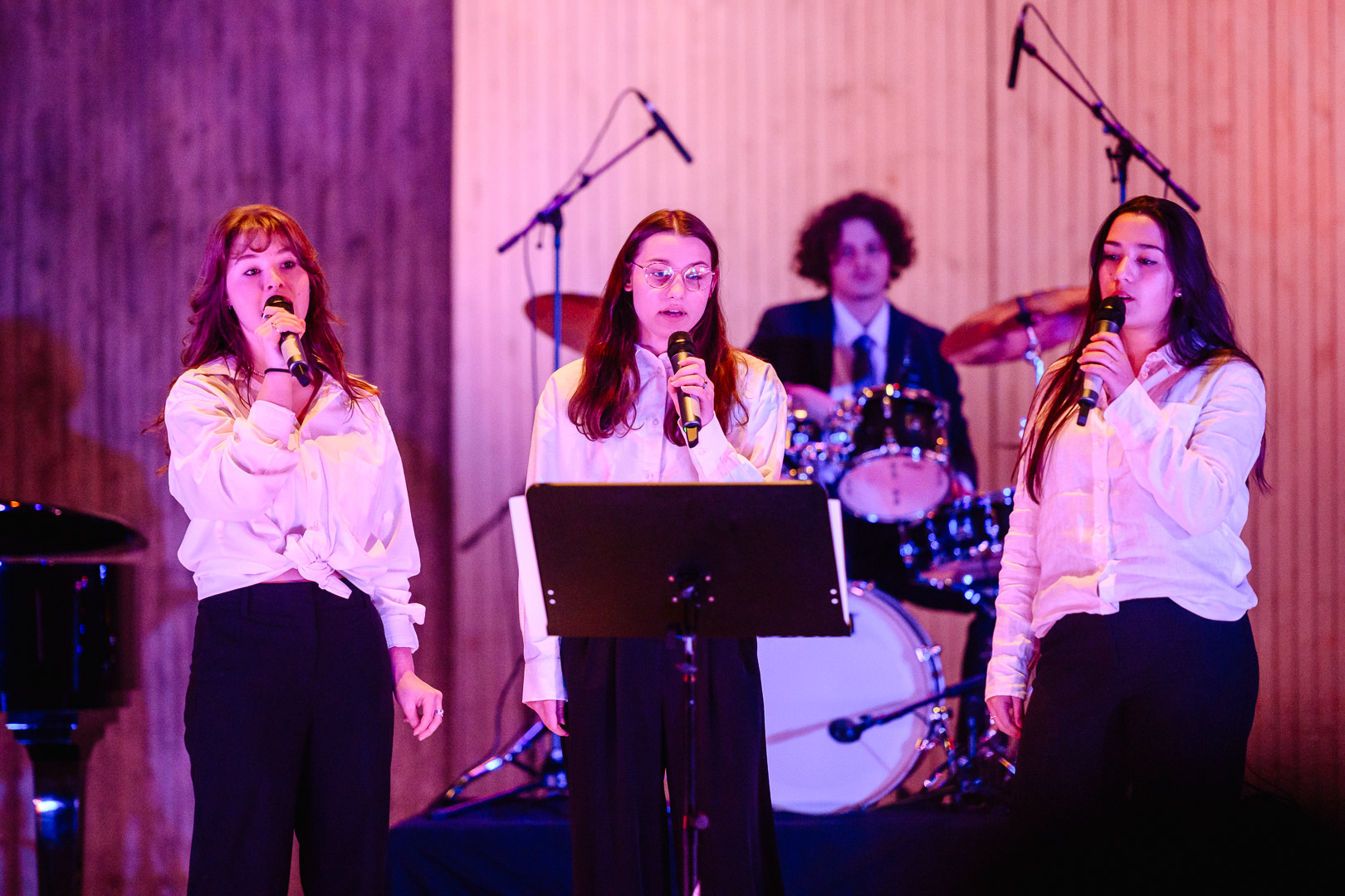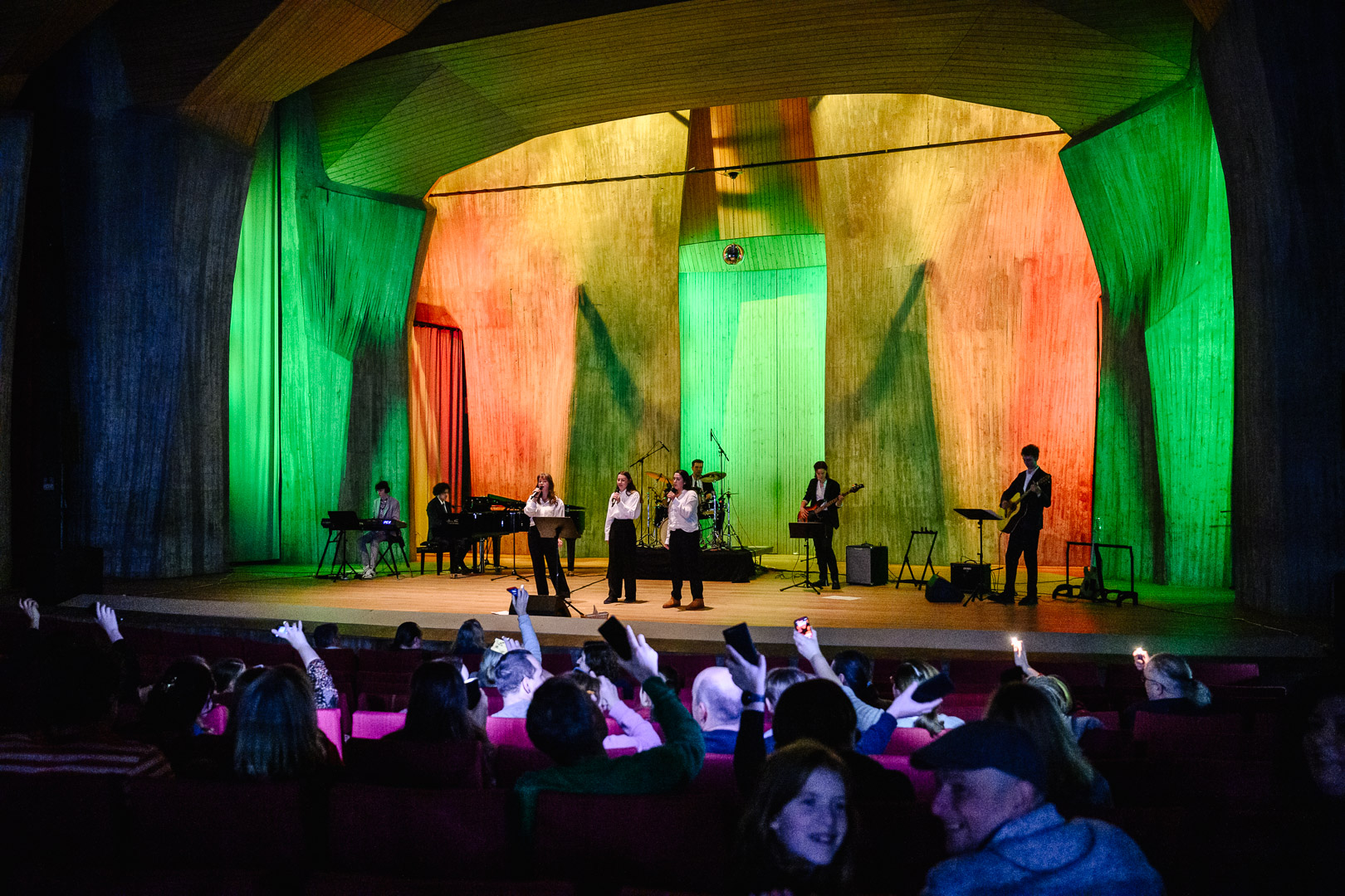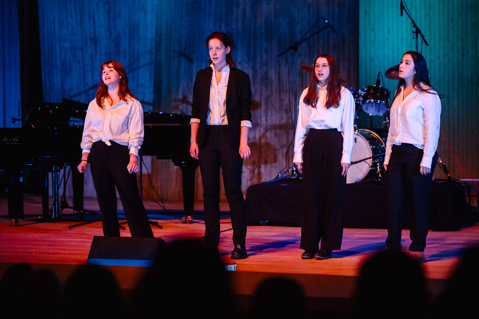Schon der Eröffnungs-Rap „Die da“ begeisterte das Publikum, ebenso faszinierte „Jailhouse Rock“ von einer weiblichen Stimme gesungen, zu „Yellow“ sang unser Schulchor und die Diskokugel zu „City of Stars“ machte klar: Hier gibt es etwas ganz Neues. Spätestens bei „I’m so excited“ hielt es niemanden mehr auf den Sitzen. Gleichwohl konnte man bei “Imagine“ träumen und auch ein Weihnachtssong fehlte nicht. Das Publikum war so begeistert, dass es umgehend eine Zugabe einforderte, was die gute Stimmung noch verstärkte.