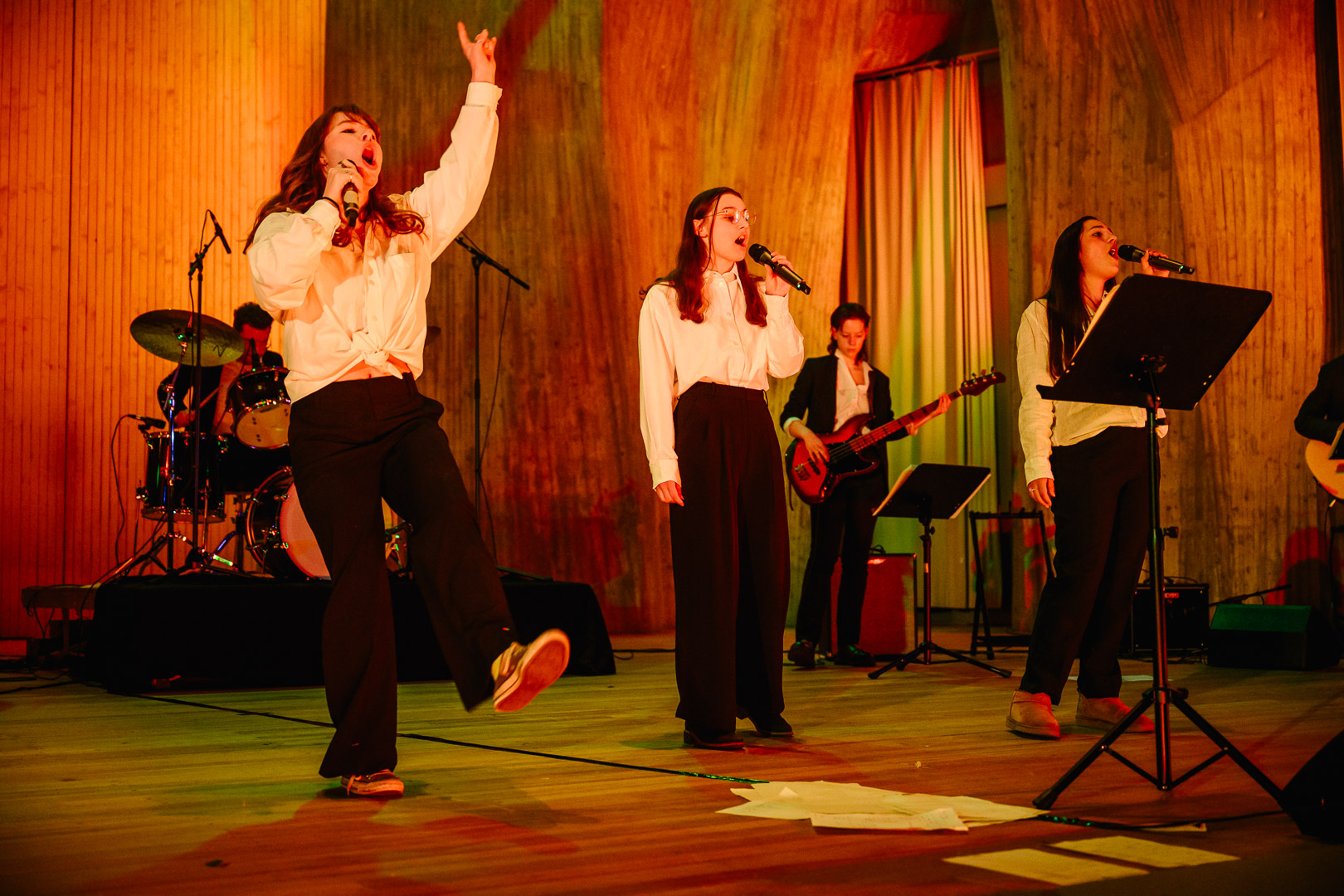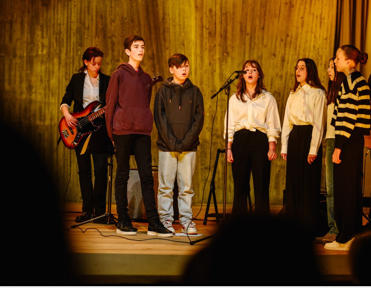 Am 12. Dezember 2024 gab die neue Schulband „Tom’s Legs“ ihr erstes Konzert im großen Festsaal.